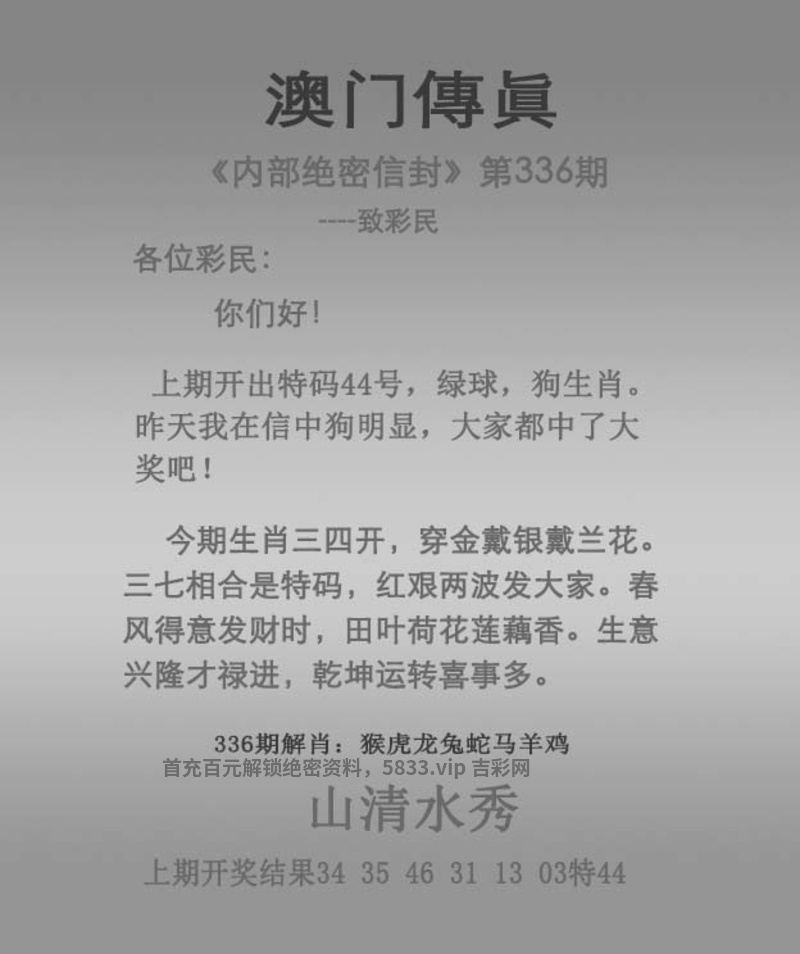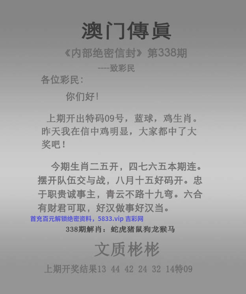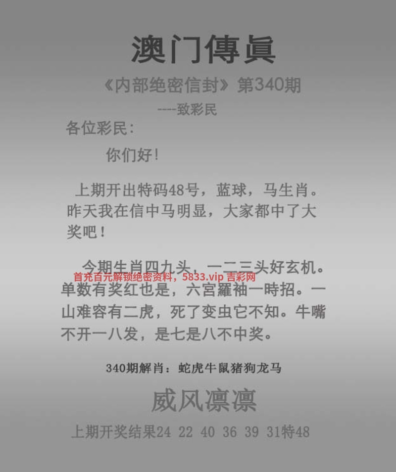 | 340期:六肖中特【猴蛇狗马羊鸡】开:發00中 |